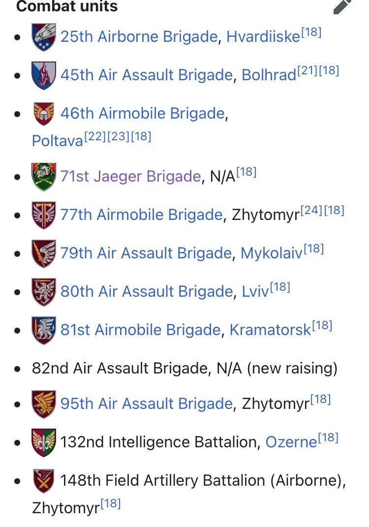 Když ono je to těžké, Ukrajina má tři druhy brigád, s tím ze jen 25th airborne bude asi čistá výsadková