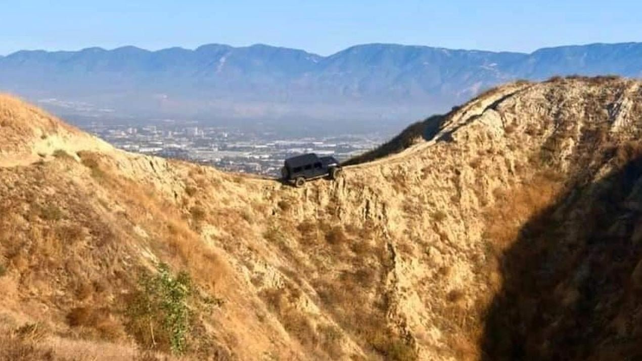 Jeep Wrangler byl nalezen uvízlý na stezce pro cyklisty v Kalifornských horách, kde jej majitel opustil a odešel. Není jisté, zda se na nebezpečnou cestu vydal záměrně, nebo při toulkách terénem ztratil směr. Ze záběrů je patrné, že jde o vskutku úzkou cestou lemovanou strmými srázy a je vůbec s podivem, že se Wrangler dostal až sem. Automobil je nyní zajištěný na místě proti pádu a je dost pravděpodobné, že vůz bude muset být vysvobozen za pomoci vrtulníku. Později se ukázalo, že majitelem vozu je jistý Ricky Barba a v neděli podvečer jej řídil jeho bratr, který neměl s podobnými vozy zkušenost. Jeep Wrangler byl nakonec zdarma odtažen spolkem Jalados 4x4, tedy se Barbové patrně i vyhnou pokutě.