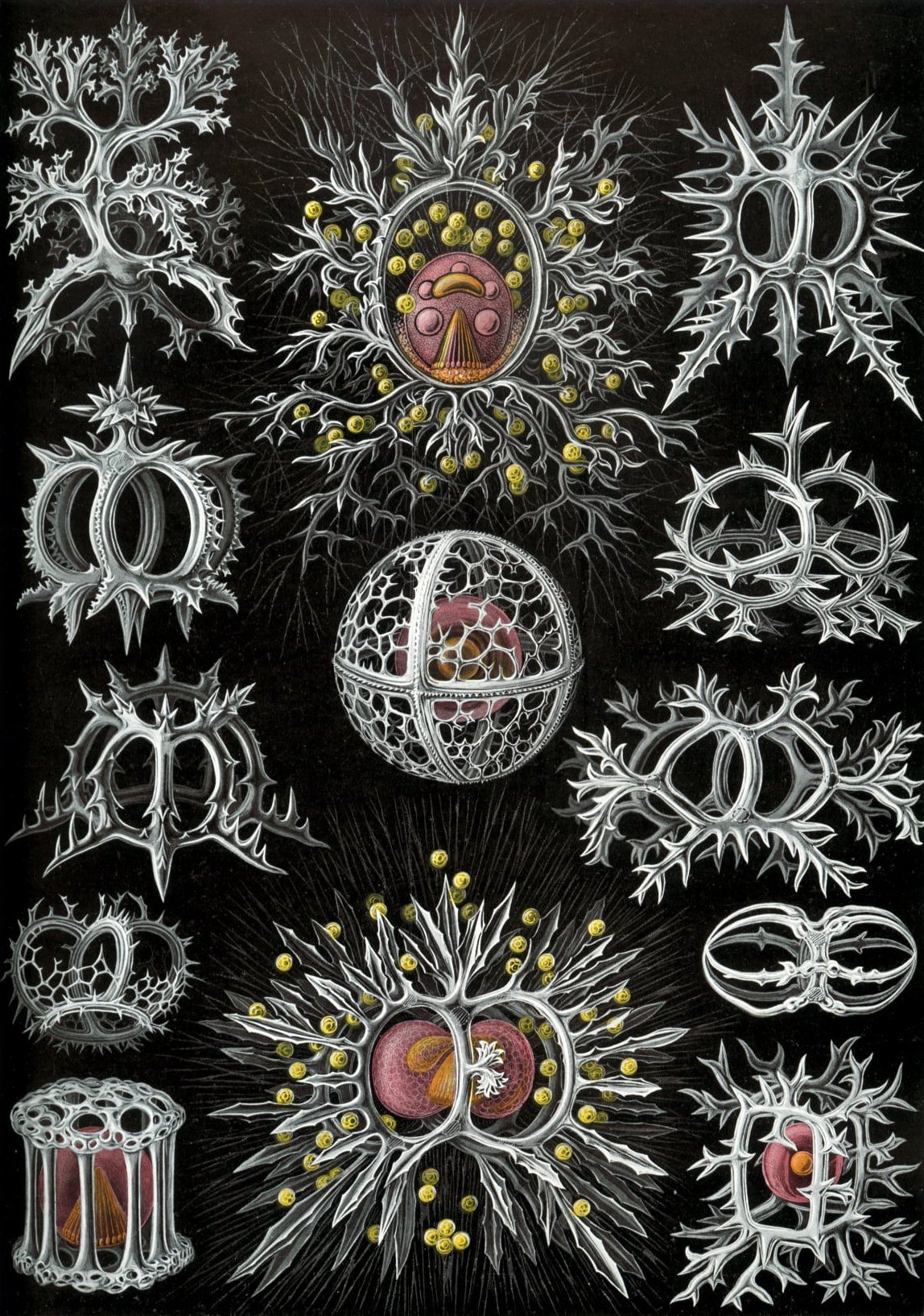 Mřížovci (Radiozoa) je kmen mořských jednobuněčných protistů, kteří vytvářejí své buňce mřížovité podpůrné struktury až ozdobné schránky s velkými otvory z oxidu křemičitého. Tyto křemičité schránky, o velikosti 0,1–0,2 mm, se usazují na dně moří v podobě radiolariového bahna. Mohou se vyskytovat i v planktonu. Autorem kresby je německý biolog Ernst Haeckel (1834-1919), představitel darwinismu a profesor na jenské univerzitě.