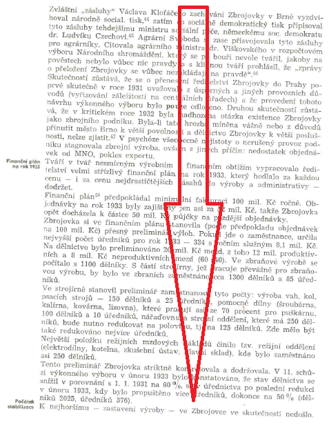 Přídáno pokračování týkající se bližších podroboností krátce po ovládnutí Patrónky, dále dopady hospodářské krize a přehled investic do jednotlivých závodů Zbrojovky.
