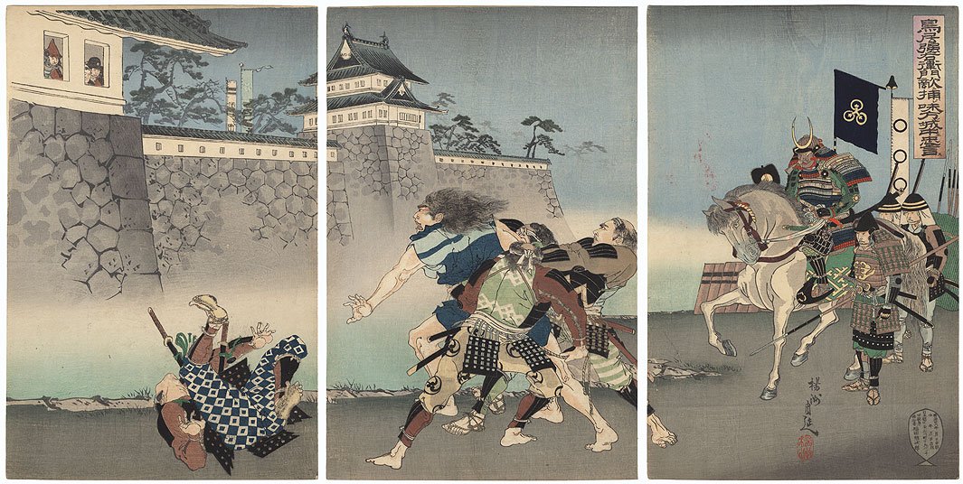 Válečný prapor s podobiznou ukřížovaného vojáka, který si nechal roku 1575 vyrobit samuraj Ochiai Michihisa, na památku hrdinného nepřítele, který riskoval svůj život, když proklouzl z obleženého hradu, aby přivedl posily, při návratu byl zajat a ukřižován. Torii Suneemon byl prostým pěšákem (ašigaru), který sloužil rodině Okudaira, stoupenců Tokugawy Iejasu, během japonské Éry válčících států. Zde je jeho příběh.