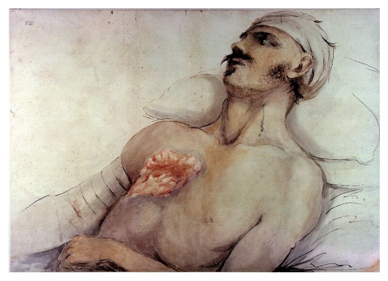 Čtyři akvarely anglického vojenského chirurga z doby napoleonských válek Charlese Bella. Lékař zraněné vojáky nejen léčil, ale i maloval jako studijní materiál pro své žáky. První voják utrpěl zranění hlavy a byla mu provedena trepanace lebky. Druhý přišel o ruku v rameni a musela být uzavřena hlavní tepna. Třetí utrpěl zranění na hrudníku způsobené střepinou dělostřeleckého granátu, která zasáhla i jeho ruku. Čtvrtý byl zasažen šavlí do břicha. Další obrázky najdete v odkazu: