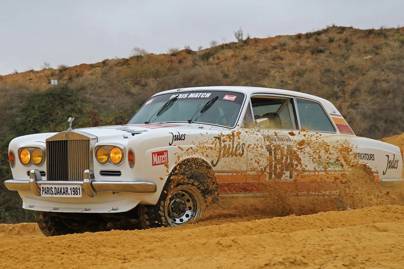Pouštní motoristický maraton Rallye Paříž-Dakar pořádaný od roku 1979 svou náročností přitahoval dobrodruhy všeho druhu. Jedním takovým byl i Thierry de Montcorgé. Ten se se svými kumpány jednoho veselého večera u sklenky pastisu vsadil, že závod z Paříže do Dakaru zdolá ve svém voze Rolls-Royce. Dobří kamarádi svého přítele samozřejmě vždy podpoří, a tak sázku přijali. Podobný podnik je finančně i časově náročný, proto bylo potřeba najít sponzora. Tím se stal Christian Dior a jeho voda po holení jménem Jules. Sériový Rolls-Royce by v terénu moc parády neudělal, zásadní přestavba vozu byla tedy nevyhnutelná. Nutno říct, že z původního mondénního modelu Corniche zbyla jen karoserie a interiér. Osmiválec Rolls-Royce nahradil hrubý V8 od Chevroletu, jehož 350 koní bylo díky systému z tehdejší Toyoty Land Cruiser posíláno na všechna kola. Dojít muselo i na další úpravy spíše symbolického charakteru. Zatímco soška Spirit od Ecstasy na monstrózním chladiči byla zachována, za své musela vzít klimatizace a lednička na šampaňské. Po téměř 2000 hodinách práce to tedy Rolls-Royce Corniche úplně nebyl, spíše šlo o jeho repliku. To však nikomu nevadilo, protože pohled na obří kupé jedoucí pouští stál za to. Každou noc hluboko na Sahaře de Montcorgé a jeho spolujezdec Pelletier, ovonění parfémem Jules svého sponzora, postavili za svým Cornichem improvizovaný bivak a z piknikového koše vytahovali ústřice a další gastronomické dobroty, aby zmírnili bolest při boji s největší pouští světa. Zatímco na startu se dobrodruhům s Rollsem všichni soupeři smáli, když anglo-francouzské monstrum drželo v polovině závodu 13. místo, smích je přešel. Rallye Rolls byl navržený tak, aby byl pevný a pohodlný, musel vydržet až 900 perných kilometrů denně, na ničem jiném nezáleželo. Po veleúspěšné první polovině závodu stihla posádku velká nepříjemnost. Táhlo řízení nevydrželo nástrahy náročného terénu a zlomilo se. Oprava byla složitá a v pekelných pouštních podmínkách zabrala příliš mnoho času, pořadatelé tak byli nuceni Rolls-Royce ze závodu diskvalifikovat kvůli propásnutí startu do další etapy. Sázka je sázka a bílý Rolls-Royce bylo nutné dostat do Dakaru stůj co stůj. A tak se nakonec Rolls-Royce Jules u Růžového jezera, kde býval do roku 2006 cíl Dakaru, skutečně objevil. Sice už mimo oficiální pořadí, ale podařilo se, posádka dokončila všech 17 etap a absolvovala celou 10 000 km dlouhou trasu jednoho z nejnáročnějších závodů planety. V roce 1984 se de Montcorgé na Dakar opět vrátil s netradičním vozem – ještě bizarnější šestikolkou Jules II. To už je ale jiný příběh.