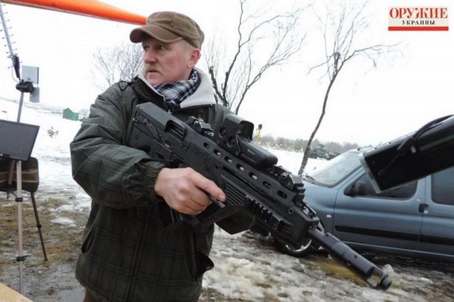 Na fotce níže můžeme vidět raný prototyp ukrajinské experimentální pušky Vepr konstrukce bullpup (základem AK-74):