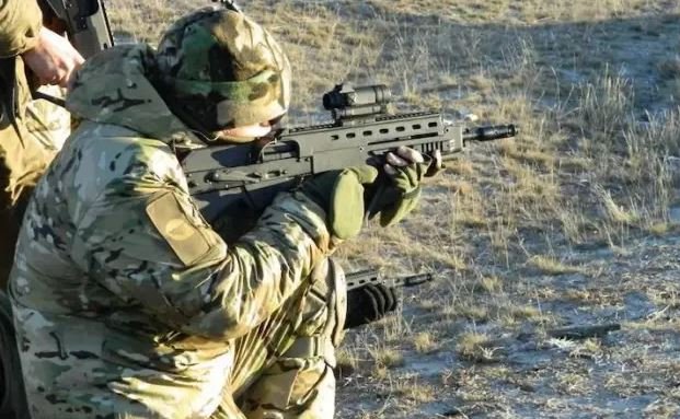 Aktuální fotka ukrajinského vojáka s útočnou puškou Maljuk.