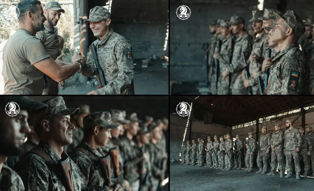 Hlavní rotmistr 47. samostatné mechanizované brigády udělil rukávové znaky vojákům speciálního praporu "Škval". Tento prapor se skládá z bývalých vězňů, kteří se dobrovolně přihlásili k obraně země. Každý člen byl pečlivě vybrán prostřednictvím důkladného náborového procesu.