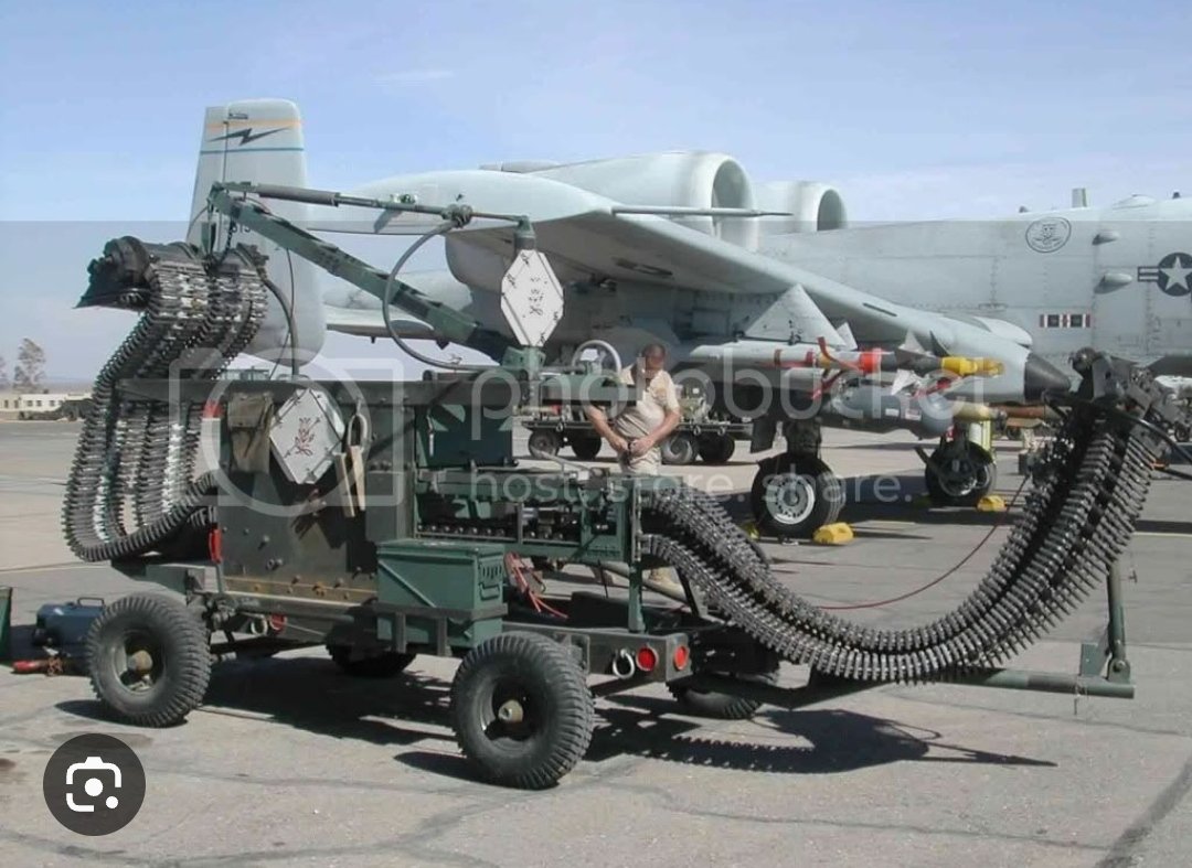 Na fotografii můžeme vidět speciální vozítko nazvané "Dragon", které vzniklo pouze k účelu nabíjení munice pro letoun A-10 Thunderbolt.