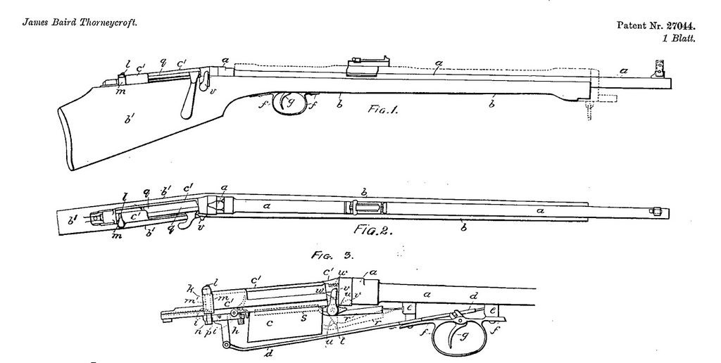 Jeden z prvních známých návrhů bullpup pušky si nechal patentovat ve Velké Británii kolem roku 1902 Skot J.B.Thorneycroft. Jeho záměrem bylo vytvořit pušku s kompaktní velikostí, která si zároveň zachová délku hlavně a účinný dostřel běžné vojenské pušky plné velikosti. K dosažení tohoto efektu Thorneycroft posunul úderník a zásobník dozadu do pažby a umístil spoušť před zásobník. Zkonstruoval také nezbytné dlouhé spojení mezi spouští a spoušťovou pákou, která probíhala uvnitř pažby kolem zásobníku. Puška Thorneycroft byla testována britskou armádou v několika verzích, ale nakonec byla zamítnuta ve prospěch konvenční pušky Lee-Enfield (slavná SMLE). Přibližně ve stejnou dobu si další britský vynálezce, P.T. Godsal, patentoval svou vlastní verzi pušky typu bullpup, která navzdory četným vylepšováním a úpravám, rovněž nedokázala přilákat žádné vojenské nebo civilní kupce.