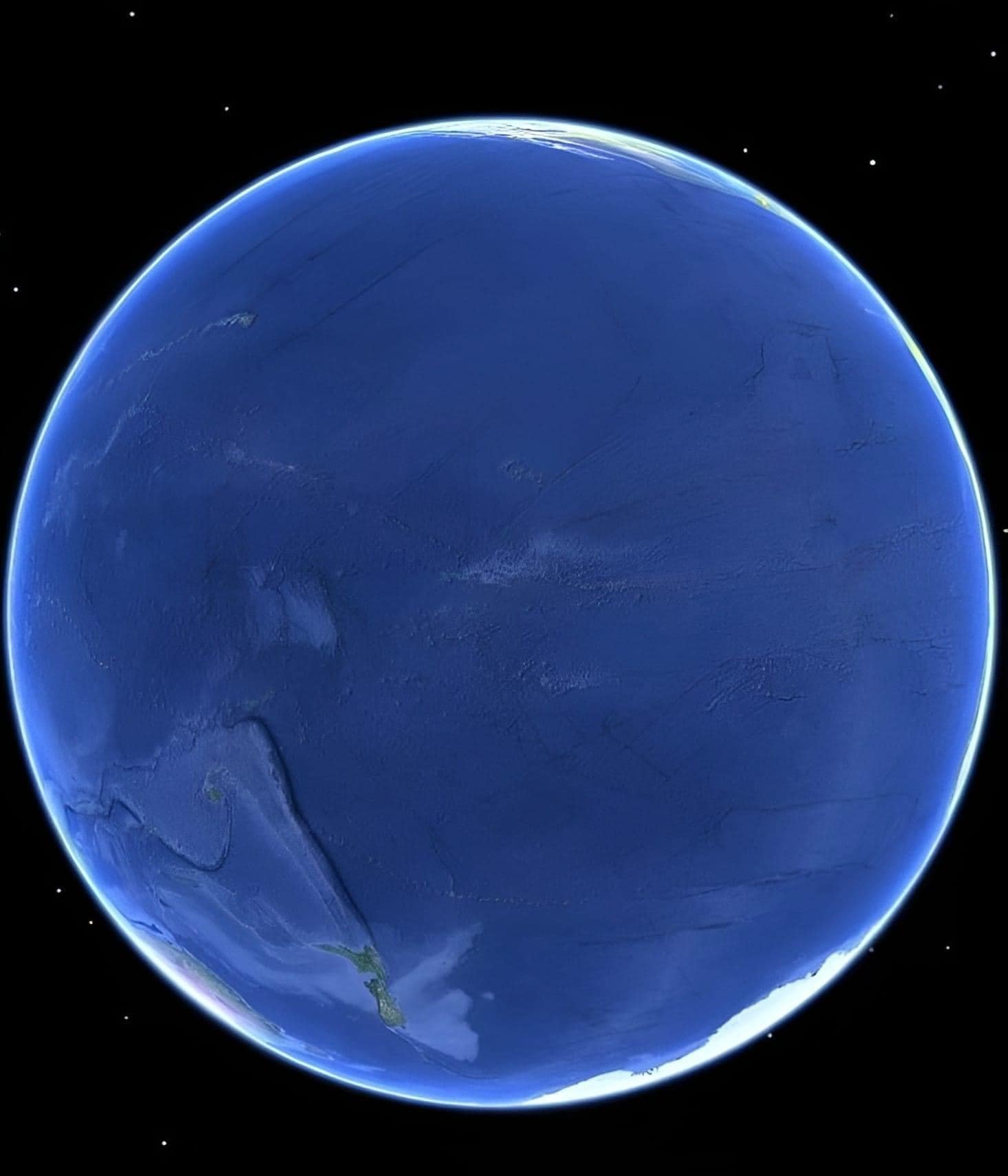 Tichý oceán nebo též Pacifik, je největší oceán na Zemi. S rozlohou 165,25 milionů km² je větší než veškerá pevnina (148,94 mil km²). Bez okrajových moří zabírá 46 % vodních ploch a 32 % celkového povrchu Země. V nejširším místě v tropech měří přes 20 000 km, což je přibližně polovina obvodu zeměkoule, od severu k jihu jeho délka přesahuje 16 000 km. Průměrná hloubka Tichého oceánu je 4 000 metrů, ale najdeme zde i Marianský příkop, který je s hloubkou 10 994 metrů nejhlubším místem na Zemi. Najdeme zde asi 25 000 ostrovů (většina je na jih od rovníku), tedy více než ve všech ostatních oceánech dohromady. Pokud jde o poněkud matoucí "dvojí" název, tak oba vycházejí z plavby portugalského mořeplavce Fernão de Magalhãese (1480-1521), který při své cestě na Filipíny v roce 1520 zažil v jeho vodách klidnou plavbu. V latině se moře nazývá Mare Pacificum, "poklidné moře", odtud název Pacifický, česky Tichý oceán. Pro Evropany objevil Tichý oceán Španěl Vasco Núñez de Balboa (1476–1517), který v roce 1513 překročil Panamskou šíji. První mapu, na které byla zobrazena Amerika, oddělující dva odlišné oceány, vytvořil Martin Waldseemüller roku 1507. O něco později (1529), vytvořil Diogo Ribeiro mapu, která už ukazovala Pacifik přibližně ve správné velikosti. Pokud jde o tento obrázek, tak jej najdete na Google Earth, výška pohledu 12.028,36 km GPS 14 49 21.38 S, 150 35 04.56 W, Datum satelitního snímku 14. prosince 2015.