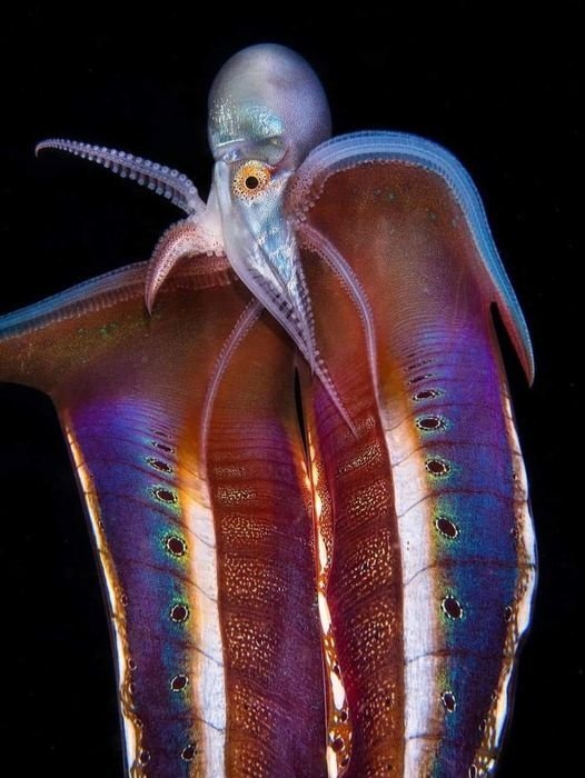 Argonaut fialový (Tremoctopus violaceus) je druh chobotnic, který tvoří jedny z nejpodivnějších párů podmořského světa. Samci jsou velcí asi jako vlašský ořech (2,4 cm), kdežto samice dorůstají délky až dvou metrů. Není úplně známo, proč se u tohoto druhu vyvinul tak výrazný pohlavní dimorfismus, ale předpokládá se, že samci vkládají veškerou svou energii do hledání samic, nikoli do samotného růstu. Další zajímavostí těchto chobotnic je, že jsou imunní vůči jedu měchýřovky portugalské (Physalia physalis), nebezpečného žahavce spadajícího mezi trubýše. V podstatě vzduchový měchýř jehož splývající chapadla dosahují délky 10-30 metrů a i pro člověka je jejich požahání velmi bolestivé (v podstatě může být i smrtící). Argonaut fialový jim však tato chapadla trhá a máchá jimi jako zbraní proti predátorům. Chobotnice získala své anglické jméno (Blanket octopus) podle "přikrývky" kterou mají samice nataženou mezi některými chapadly. V případě ohrožení ji dokážou napnout a predátora tak zastrašit. Vzhledem k tomu, že se tyto chobotnice nikdy nepohybují po mořském dně, tak jsou poměrně snadnou (dobře viditelnou) kořistí pro mnoho tvorů, museli si tedy najít velkou škálu protiopatření, jak se jim bránit.