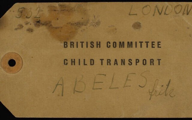 Visačka z Kindertransportu z roku 1939 (s jménem Fritz, užívaným v dětství)