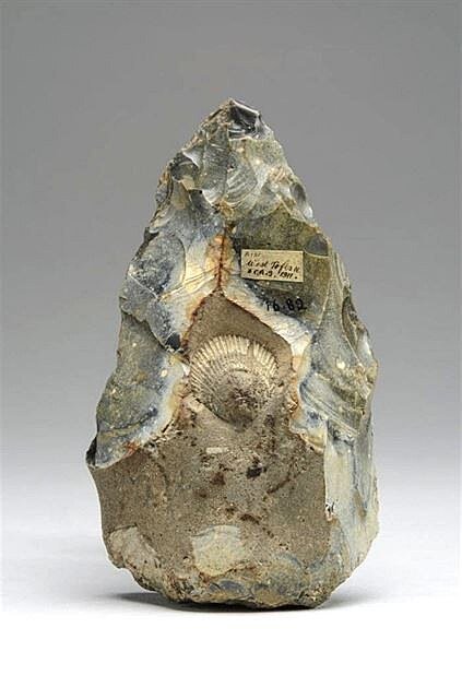 Pravěký pěstní klín se zachovanou mušličkou