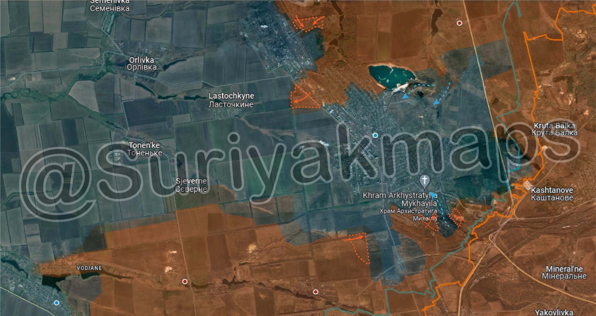 Proto všechny pokusy o postup provádějí pěší skupiny podporované dělostřelectvem a bezpilotními letouny. V současné době se ruským jednotkám podařilo uchytit se u Kucajské strže a rybníků severně od osady.
