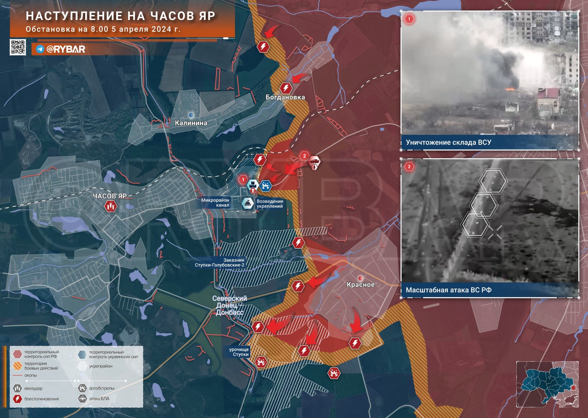 Bitva o Časov Jar: výpad ruských ozbrojených sil do blízkosti čtvrti "Kanál", situace k 8.00 hodin dne 5. dubna 2024