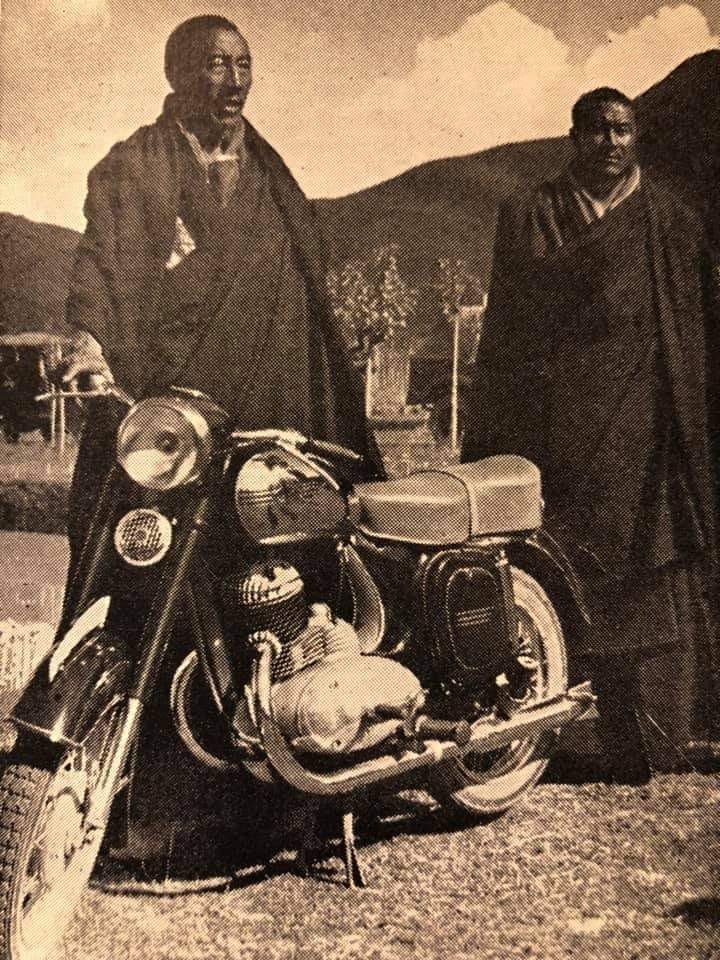 Tibetští mniši s československým motocyklem Jawa 250
