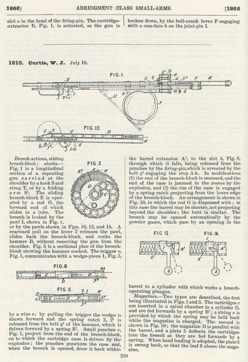 Jako první bullpup puška je často považován tento kousek z 60. let 19. století. Patentovaná byla v srpnu 1866 britským vynálezcem Williamem Josephem Curtisem a je tak mnohem starší než všechny ostatní známé opakovací pušky tohoto typu. Nejen že je tato podivně vypadající puška ve své podstatě bullpup, ale též jde o jednu z prvních zbraní s úderníkem, nabíjela se pumpováním jako moderní brokovnice, měla bubnový zásobník a ranou skládací pažbu. Díky tomu je skutečně revolučním designem na tehdejší dobu. Střílelo se z ramene, podobně jako u moderních protitankových zbraní, a měla skládací kožený řemínek fungující jako pažba. Zajímavostí je, že jeden kousek vlastní muzeum střelných zbraní ve městě Cody ve Wyomingu (Cody Firearms Museum). nevyrobil ji však William Curtis, ale společnost Winchester v roce 1895. Nebýt korporátního soudního sporu na jiném kontinentu, 30 let poté co byla navržena, je velice možné, že by celá tato neobvyklá konstrukce upadla do neznáma. V roce 1894 totiž Francis Bannerman žaloval Winchester za porušování jeho patentů, když představili "pumpovací" brokovnici Model 1893, kterou navrhl slavný americký konstruktér John Moses Browning (1855-1926). V reakci na to se Winchester vydal prohledat patentové archivy Evropy, aby našel dřívější konstrukci "pumpičky". Našli tři, z nichž jedna byla zvláštní puška Williama Curtise. Winchester vyrobil funkční modely každého z dřívějších patentů, které dokázal najít, a předložil je jako soudní důkaz s tím, že Bannerman nemá výhradní práva na princip pumpování k nabíjení zbraně. Winchester tak dokázal, že Bannerman nevlastnil patentová práva na koncept, vyhrál případ a v roce 1897 byl představen legendární Model 1897. Curtisova puška vyrobená ve Winchesteru zůstala ve sbírce společnosti a na své aktuální místo v Cody Firearms Museum se dostala, když jim byla sbírka darována.