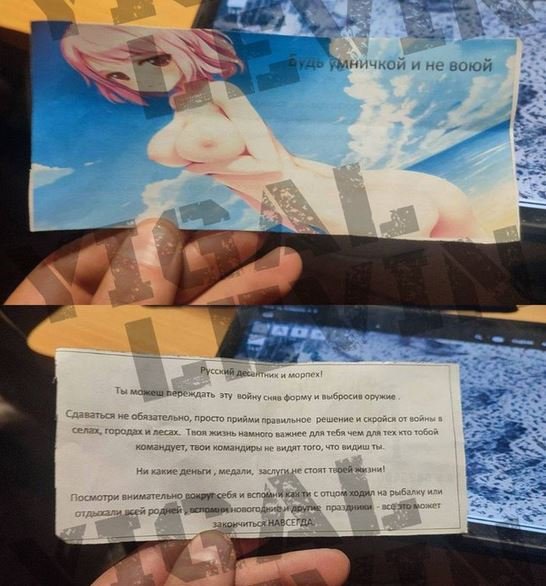Ukrajinské letáky shozené na ruské pozice (manga teď u ruských vojáků frčí):