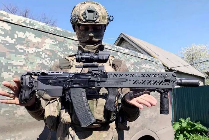 Mezi ukrajinskými vojáky se objevuje velmi zajímavá konverzní sada, Black Storm BS-4, která umožňuje přestavbu klasické pušky typu AK na typ bullpup. Bullpup je označení pro moderní provedení střelné zbraně, u které je závěr se zásobníkem umístěné až za spouští (závěrový mechanismus je tak umístěn uvnitř pažby). Tato úprava umožňuje při zachování původní délky hlavně zkrátit celkovou délku zbraně a zlepší se manévrovatelnost. Podle tweetu od B-AREV z 9. srpna 2023 lze vidět AK-74 v konfiguraci bullpup, díky konverzní sadě Black Storm BS-4. Tato konverzní sada přemění ikonickou útočnou pušku AK-47 (nebo AK-74) na zbraň lépe přizpůsobenou pro prostředí zákopové války. Tato stavebnice, která kombinuje modernizaci a kompaktnost, vyvinutá na Ukrajině společností Black Storm, nabízí významné výhody pro vojáky. Konstrukce zkracuje celkovou délku zbraně umístěním odpalovacího mechanismu a zásobníku za rukojetí, čímž se uvolňuje prostor vpředu. To dává vojákům lepší manévrovatelnost ve stísněných prostorech, jako jsou zákopy, budovy nebo jiné omezené prostory, kde pohyblivost zbraně může znamenat rozdíl mezi životem a smrtí. Dá se s jistotou říci, že jde o významnou výhodu, zejména s ohledem na konflikt na Ukrajině. Jednou z vlastností sady Black Storm BS-4 je její schopnost modernizovat klasické zbraně bez změny jejich základního designu. AK-47 a AK-74 jsou legendární střelné zbraně známé svou spolehlivostí, ale tato sada zvyšuje jejich výkon tím, že přináší významná vylepšení, aniž by narušila jejich tradiční konfiguraci. Mezi vylepšeními můžeme zaznamenat možnost nabíjet zbraň levou nebo pravou rukou díky inovativnímu designu závěru, snadno přístupné bezpečnostní páce a tlačítku vyhození zásobníku. Tato taktická vylepšení nabízejí lepší odezvu v intenzivních bojových scénářích. Nevýhody konfigurace bullpup jsou, že pažba zbraně není délkově stavitelná, střelec si tak nemůže zbraň uzpůsobit pro svou postavu. Vyhazovací okénko je blíže ke střelcově tváří to způsobuje, že spaliny mohou jít střelci do očí. V případě katastrofického selhání zbraně je závěrový mechanismus mnohem blíže k trupu a hlavě střelce, může tak dojít k vážnějším poraněním. U zbraní bullpup je stisknutí spouště přenášeno táhlem spouště na delší vzdálenost, což se projevuje tvrdší spouští s delším chodem. Výměna zásobníku na zbraních bullpup je méně intuitivní a většinou trvá déle. Není to ale pravidlem, každá zbraň má trochu jiné ovládání a s dostatečným tréninkem je možné se zbraněmi bullpup dosahovat podobných časů pro taktické přebití jako u ostatních zbraní.
