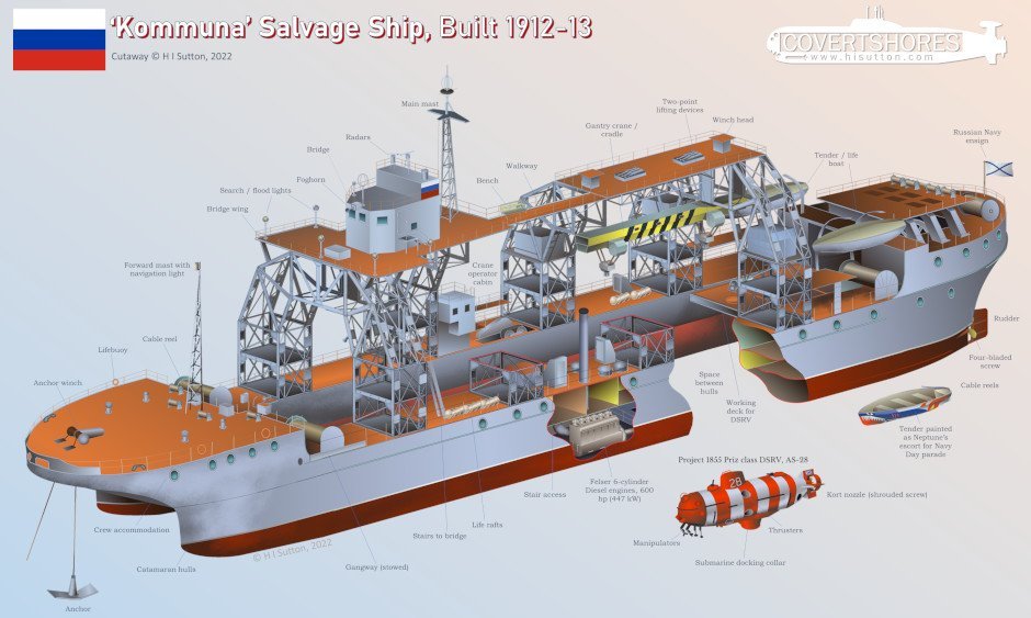Mluvčí ukrajinského námořnictva Dmitrij Pletenčuk potvrdil útok na záchrannou loď ponorek Kommuna v okupovaném Sevastopolu. "Povaha poškození se ověřuje. Je ale jasné, že loď již není schopna plnit své úkoly," dodal. Komunna je jediná svého druhu v ruském námořnictvu. Její stavba započala již v roce 1912 (není chyba). Proslýchá se, že k útoku byla použita "nová" raketa Neptun. Podle rozboru videa to vypadá, že zasažena byla horní řídící část.