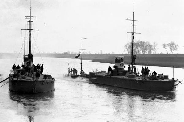 Ozbrojená loď ORP "Generał Szeptycki" a říční monitor ORP "Pińsk" v Pripjati