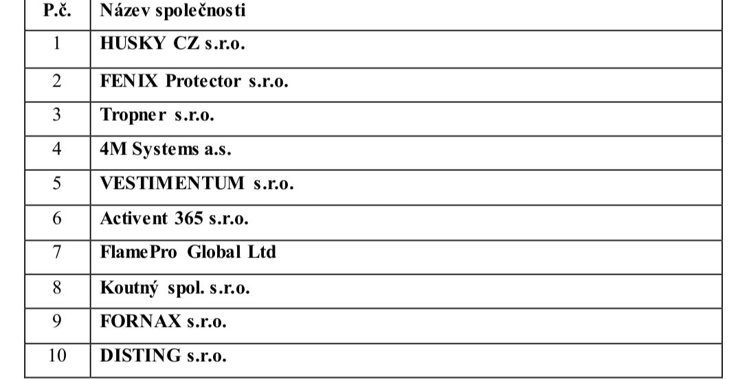 Předběžně byli osloveny tyhle firmy. Čekal sem třeba Tilak ale není tam.