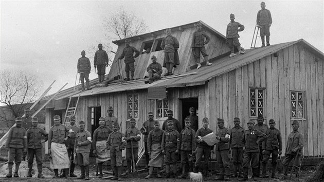 Stranou, za nádražím podél trati jest rozlehlý, bohatě oplocený prostor. Z dáli zdá se oku zcela hnědým. Barva, jejíž tón lze těžko rozlišit od okolní půdy. Jsou to ruské uniformy. Sta a sta postav stojí tu vedle sebe, sotvaže prostor stačí. Při bližším pozorování rozeznáváme zdravě osmahlé, široké tváře ruských lidí, pokryté vrstvou prachu. Jsou to váleční zajatci, nedlouho před tím z bojů u Gorlice sem dopravení. Po svolení velícího důstojníka přistupujeme blíže a rozmlouváme s několika. "Odkud ty?" padá otázka náhodně na jednoho z nich. Salutuje a odpovídá: "Z gubernie moskevské." Druhý: "Ze Sibiře, z Omska." Třetí: "Z Kavkazu." Čtvrtý: "Z Krymu." Tak zastoupen jest mezi několika sty příslušníků sever, střed i jih rozsáhlé říše ruské. "Byli jsme překvapeni vaším útokem," vypravují někteří z nich. "Naše zákopy a opevnění, jež sdělány byly v několika řadách za sebou, měli jsme takřka za nedobytné. Než útoku vaší artilerie nebylo možno odolati. Byla prostě strašlivá. Nebylo místečka, kam by nebyl dopadl váš granát neb šrapnel. Jako by se byla náhle otevřela nebesa. Zdálo se nám, jako by padaly na nás přímo sudy, naplněné ekrasitem. Nebylo možno udržeti posice. Líčení prosté a jistě pravdivé. Tváře, jež prožily tak strašné okamžiky, těžko lžou. "Kdy dostaneme chléb," ptá se jeden z nich. Ukazuji na kotel s polévkou a hromadu nakrájených porcí chleba, jež za nedlouho budou rozděleny. Uspokojení zračí se na všech tvářích.