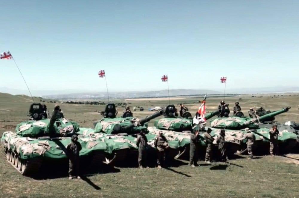 Gruzínské tanky T-72 s jakýmsi místním maskovacím potahem, snad nějakou multispektrální maskovací sítí nebo něčím v tom smyslu. Patrně to bude něco jako ruská Nakidka. Tedy kamufláž z materiálu absorbujícího radarové vlny, která eliminuje použití přesně naváděných zbraní. Nakidka redukuje infračervené, tepelné a radarové signály objektu. Nedávno jsme ji mohli vidět na ruských tancích T-90M.