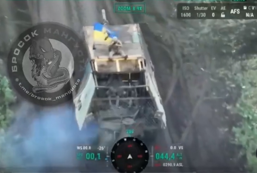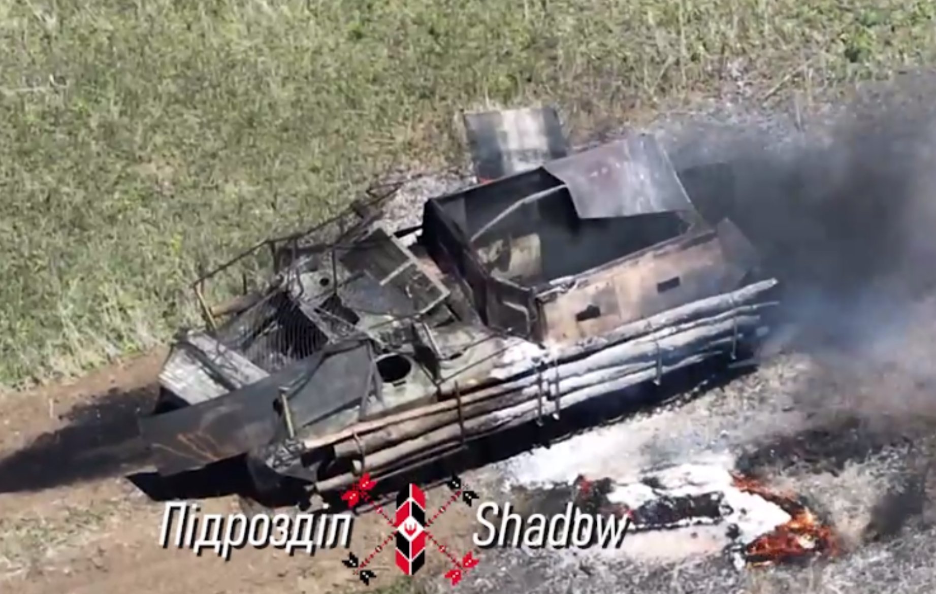Ukrajinci ukořistili ruský "želví tank". Drony ho poškodily a posádka se vzdala (řidič a velitel). Tento kus je jen velmi špatný obrněný transportér, taxi pro pěchotu. Základem je tank T-62 ze 60. let, ovšem verze M modernizovaná v 80. letech. Kanón nestřílí, je znefunkčněný. Věž se nemůže natáčet ani v malém rozsahu, tank neměl munici a poklop střelce a nabíječe (T-62 ještě neměl automatické nabíjení) byl dokonce zavařen. V tanku seděli pouze velitel a řidič. Pouze řidič něco málo vidí a pouze velitel má vysílačku (ale nic nevidí). Na tanku je přivařena nástavba, kde se ukrývala transportovaná pěchota. Není to pancíř, je to dohromady svařený plech ze sběrných surovin. Taky dronům nakonec neodolal. Tank disponoval dvěma kusy moderní technologie - dobrou vysílačkou a velmi silnou elektronickou rušičkou dronů a další elektroniky. Ty ve videu neukazují. Tohle není žádná inovace, není to ani tank. Je neschopen jakékoliv střelby, nemá ani kulomet, střílet mohou pouze pěšáci, které veze na střeše pod přístřeškem a to by z něj ještě museli vylézt, střílny tam také nejsou. Je to obrněný transportér z Wishe. Ukrajinský řidič, který "tank" odvezl, říká, že to navíc za jízdy vydávalo nesnesitené pazvuky.