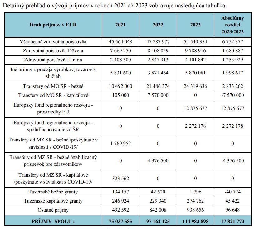 Oproti plánovanej realizácii v Martine zohľadňuje najmä navýšenie spôsobené nárokmi na stavebné vyhotovenie samostatnej funkčnej bezpečnostnej základne stavebného objektu nemocnice, zvýšenie počtu podlaží o dve podlažia, zvýšené nároky na zakladanie stavby a náročnejšie dopravné napojenie. Podzemné podlažia naviac obsahujú časti stavby nevyhnutné pre zabezpečenie osobitných potrieb investora v oblasti obrany štátu a zabezpečenia základných bezpečnostných záujmov Slovenskej republiky.
