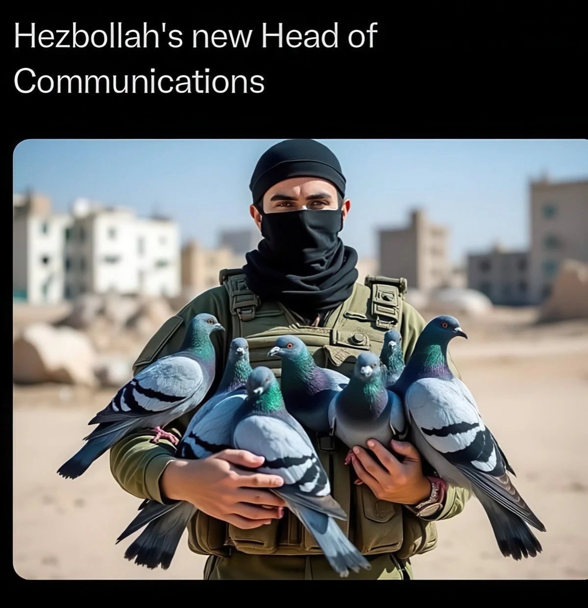 To mi připomíná starý vtip z roku 1967, jak utíká egyptský voják před izraelským tankem a občas se otočí a střílí na něj ze samopalu. Až mu dojdou náboje, tak odhodí zbraň a zvedne ruce. Tank zastaví, z poklopu vyleze izraelský voják a říká mu: "Ty Ali, nechceš koupit nějaký náboje?"