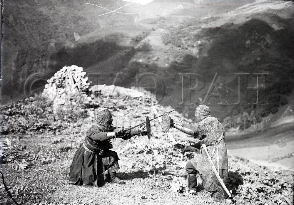 Ve svých pamětech vzpomíná plukovník Nakamura Haraguči na čtyři Chevsury, kteří měli velmi neobvyklou šermířskou techniku. Zmiňuje, že nikdy neviděl něco podobného a lituje toho, že proti těmto mužům musel bojovat, místo aby se s nimi spřátelil. V nerovném boji byli pobiti, leč jeden zraněný zajat. Padlí Datvia Aludauri, Hirchla Tsiskarauli a Aparek Kibishauri byli pohřbeni s poctou samotnými Japonci. Zraněný Bezhita Kerauli byl později vyměněn za japonského zajatce a vrátil se domů do Chevsurie, kde se dodnes vypráví veršovaný příběh o hrdinném boji oněch čtyř vojáků.