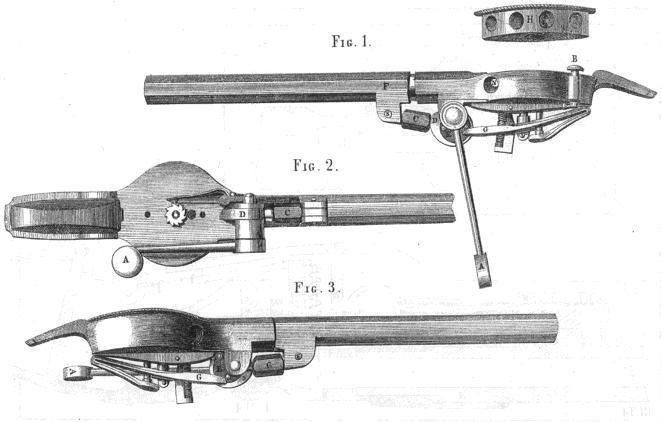 K Treebyho řetězové pušce jsem se opět dostal přes Genhartovu věžovou zbraň, konkrétně přes systém posuvné hlavně kvůli utěsnění komory proti úniku plynů ze střelného prachu. ForgottenWeapons glosují „ … i když poté zabere docela dost času nabití celého mechanismu.” Kdyby použili kulku Minié (jestlipak na ni ještě pamatují? I když duté střely v době Treebyho byly docela v kursu), zaflastrovanou jen tak, aby z komory nevypadla, mohlo by jít nabíjení i docela rychle.Rase píše: Zajímavostí je, že nešlo o první zbraň s řetězovým zásobníkem. Tu si totiž nechal roku 1855 patentovat anglický puškař jménem Tribi (Treeby).