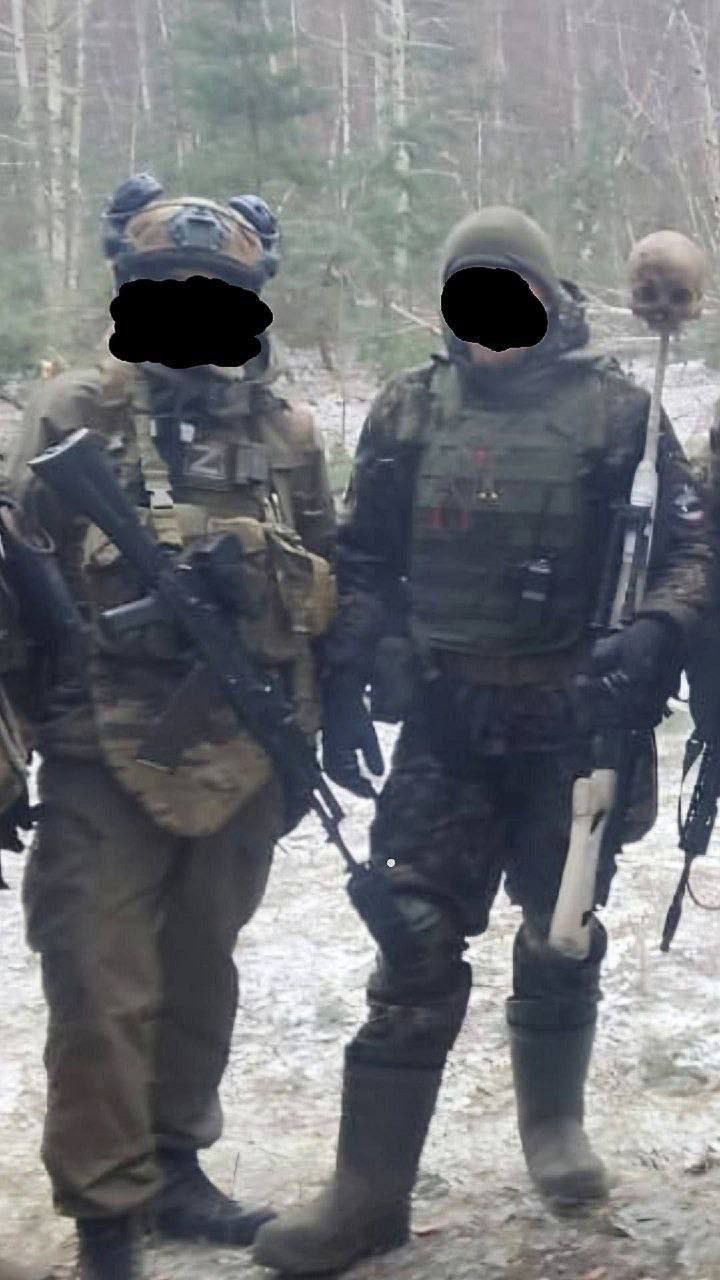Dva ruští vojáci pózují s dětskou lebkou na pušce…