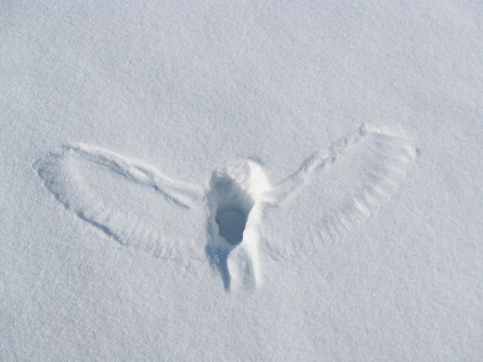Otisk sovy lovící kořist ukrytou pod sněhem
