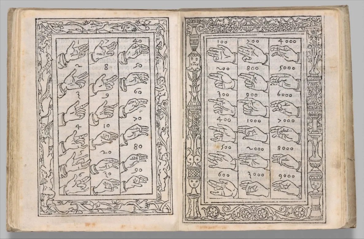 Počítání na prstech do 9999 (původně arabská metoda) na dřevorytu z roku 1491, v knize "De Arithmetica" od Filippa Calandrihona. V době raného středověku nebyla v Evropě známa mechanická počítadla a ani se neprováděly psané výpočty. Místo toho se používalo především prstů a to nejen ke sčítání a odčítání, ale také násobení. Přitom stačilo znát malou násobilku, tedy mít v hlavě výsledky násobení čísel od 1 do 5. Řekněme, že chceme vynásobit 6 x 8. Uděláme to tak, že vynásobíme jejich doplňky do desíti. 2 x 4 = 8, tím máme jednotky. Násobená čísla sečteme a odečteme 10, a máme desítky: 6 + 8 -10 = 4. Jak vidno, tento postup vychází z rovnosti: a x b = 10(a + b – 10) + (10 – a)(10 – b). Analogický postup se příležitostně používá i dnes. Na každé ruce vztyčíme tolik prstů, o kolik je činitel větší než 5. Součet vztyčených prstů je pak roven počtu desítek, součin nevztyčených prstů počtu jednotek. Náš výše zvolený příklad: 6 x 8 odpovídá: 1 + 3 vztyčených prstů, první číslice součinu je 4. 4 x 2 nevztyčených prstů, druhá číslice součinu je 8. Uvedený postup lze s mírnou modifikací použít i pro násobení čísel mezi 10 a 20. Trochu komplikovanější je použití pro násobení libovolně velkých čísel. Arabská středověká matematika a evropská matematika od cca 13. století už ovšem používaly pro 4 základní početní operace postupy, které se velmi podobají našim algoritmům pro počítání pod sebou. I výpočty druhé a třetí odmocniny se prováděly stejně, jako se tyto postupy učily ještě před pár desítkami let (u druhé odmocniny se začínalo rozdělením čísla na dvojice a dále se postupovalo dle toho, zda byl počet cifer sudý nebo lichý). S rozšířením kalkulaček znalost těchto postupů vymizela – zajímavé mimochodem je, že násobit pod sebou se přitom "obecně" umí i nadále. Zdroj: Jindřich Bečvář a kol.: Matematika ve středověké Evropě, Prometheus, Praha, 2001.