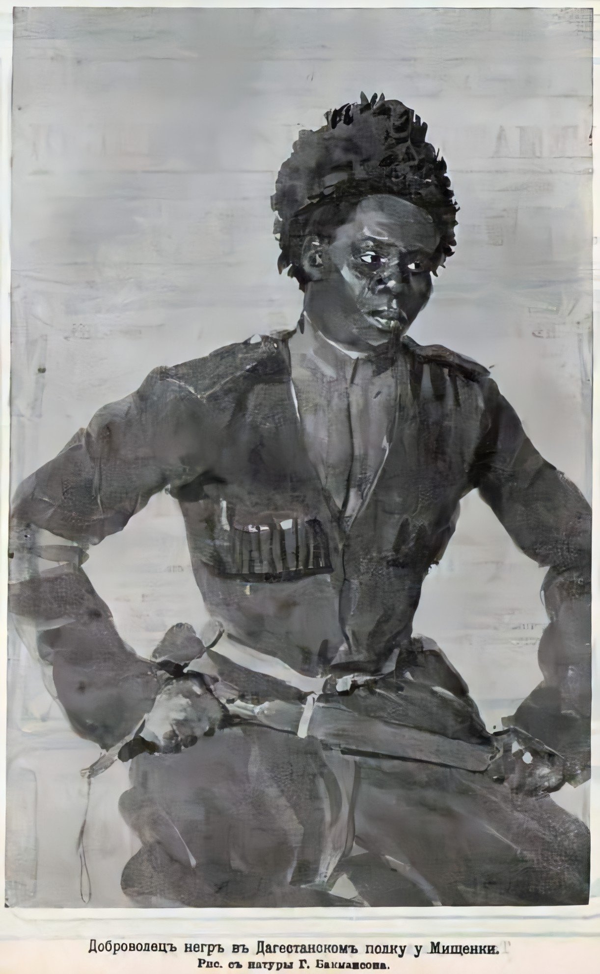 zde černý Abcházec jako vlajkonoš nějaké kozácké jednotky