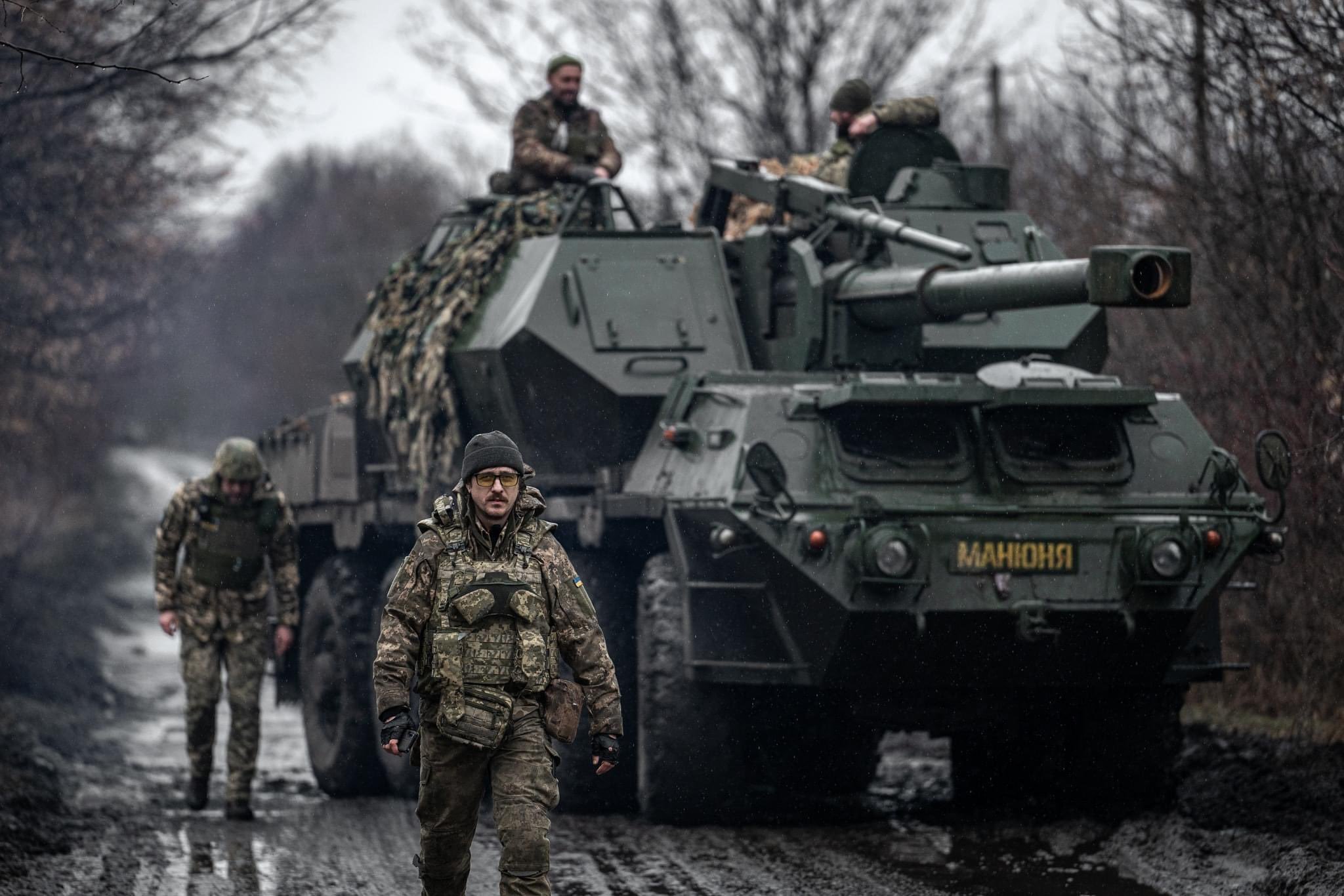 Ukrajinská samohybná houfnice ShKH vz.77 Dana ráže 152 mm pojmenovaná "Manjunja", sloužící u 110. samostatné mechanizované brigády na frontě u Avdijivky v Doněcké oblasti.