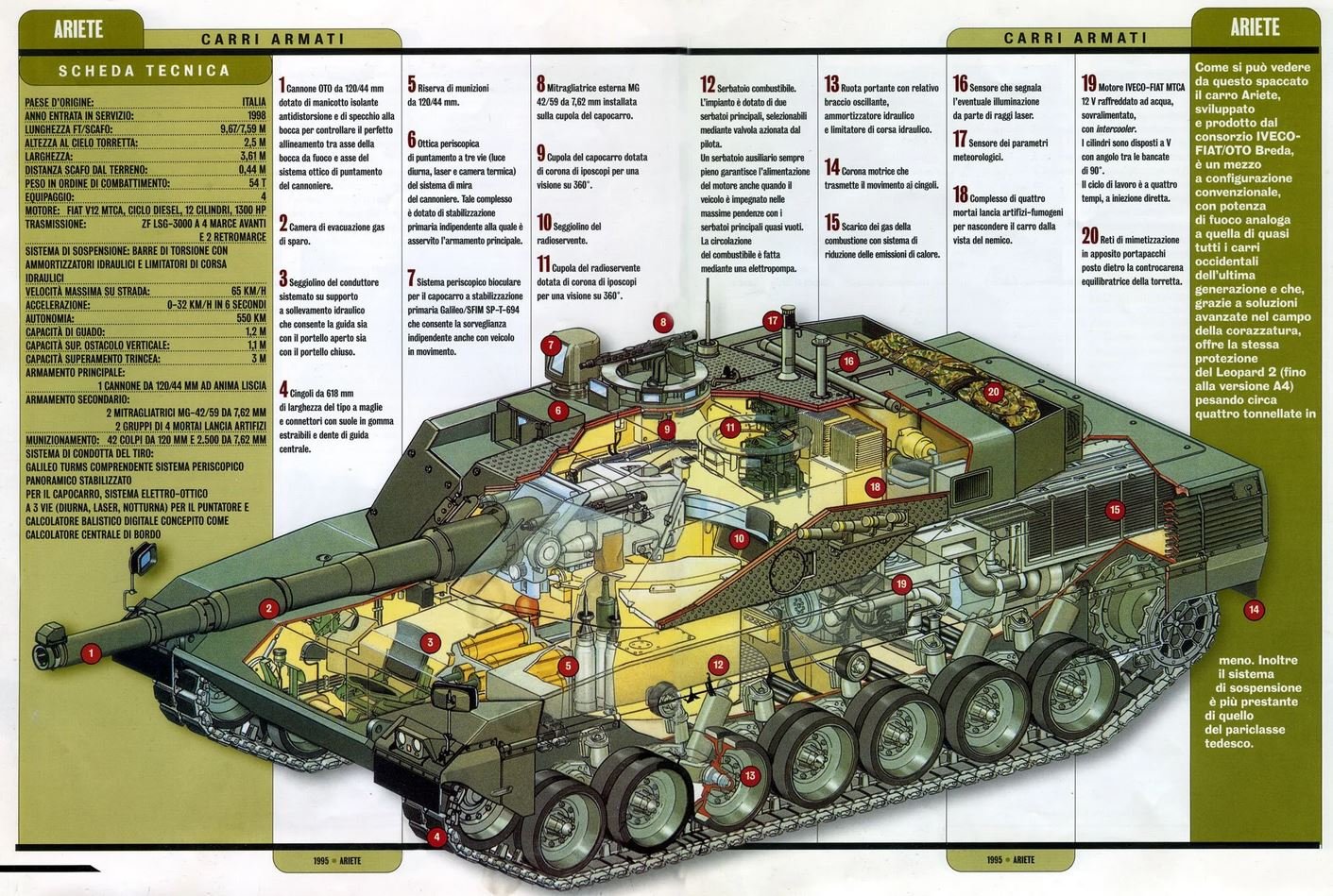Zrovna jsem hledal jak je na tom Ariete s uložením munice a je to překvapivě problém zjistit. Mělo by to být jako u Leopardu 1, tedy pohotovostní zásoba (15 ks) je přímo pod věží ve věnci, tedy žádné oddělení od posádky nebo odfukové panely! Zbytek je uložený podobně jako u Leopardu 2 v korbě za řidičem. Celkem je v tanku 42 kusů munice. byť má tedy věž s "batohem", tak v něm neveze munici, ale jiné "užitečné věci" a elektroniku. Už začínám chápat, proč chtějí nahradit stávající věž za tu z kolového Centauro II, které má 15 kusů munice ve věži a 27 v korbě.