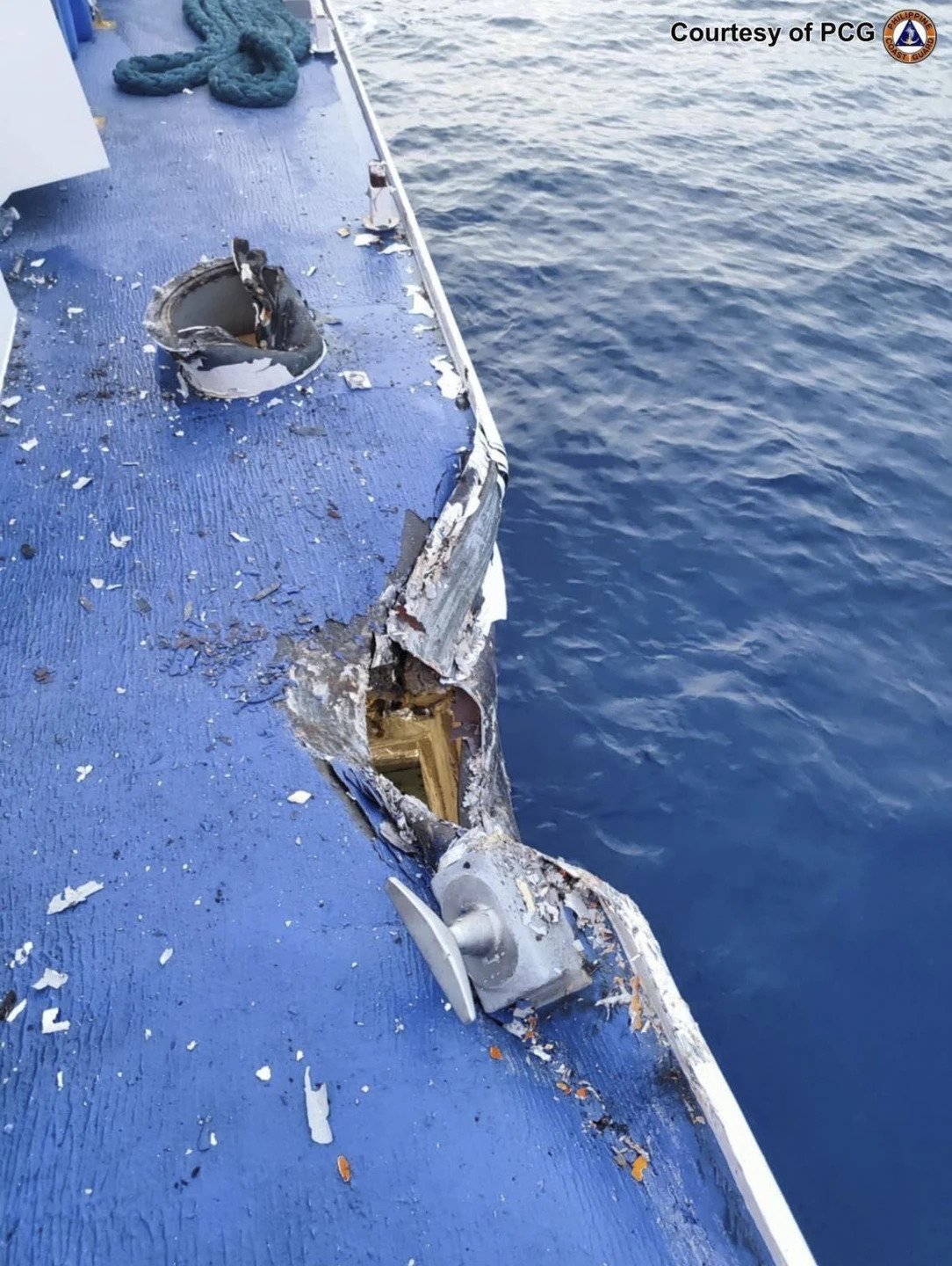 Naopak filipínská pobřežní stráž oznámila, že plavidla čínského námořnictva a pobřežní stráže podnikla „agresivní akce“ proti filipínské hlídce. Čínské plavidlo podle Manily použilo vodní dělo a bokem narazilo do plavidla filipínské pobřežní stráže, zatímco zbylá filipínská plavidla byla „blokována, stínována a čelila nebezpečným manévrům“ ze strany lodí čínského námořnictva a pobřežní stráže.
