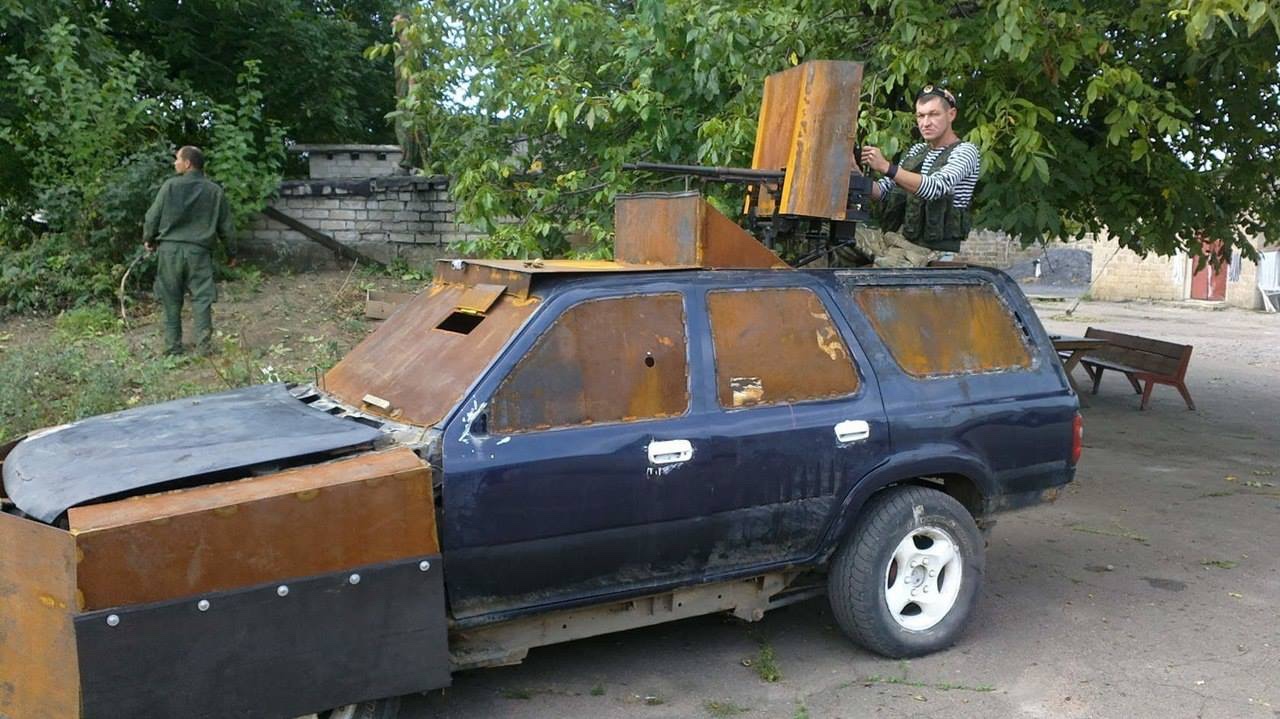 Poměrně vzácné vozidlo, čínský Great Wall Safe přestavěný na technical ruskou milicí operující na východní Ukrajině v roce 2015.