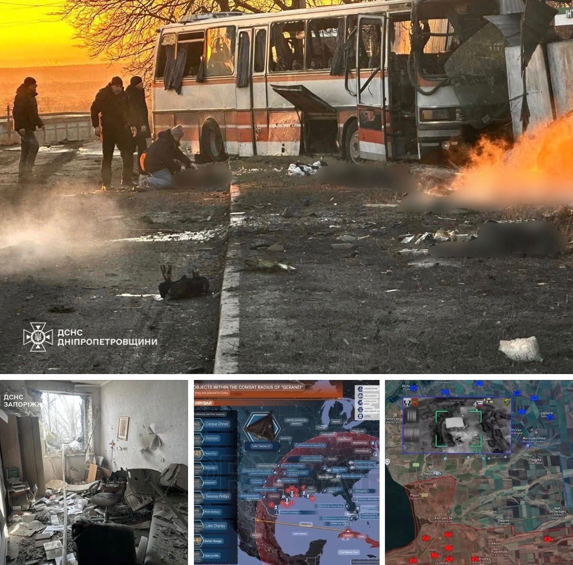 Pátek. Peskov tvrdí, že Rusko souhlasilo s tím, že na žádost Trumpa se do 1. února zdrží útoků na ukrajinskou energetiku, aby „vytvořilo příznivé podmínky pro jednání“. Ve skutečnosti to vypadá tak, že pokračuje jak ostřelování, tak i nálety, jen na jiné cíle. Rusko zahájilo masivní útoky na ukrajinskou logistiku v Dnipropetrovské oblasti. Za pouhých 24 hodin došlo k desítkám útoků, včetně útoků na civilní autobusy s lidmi. Útoky už si vyžádaly několik obětí na životech. Ruské proválečné kanály přesto ruskou vládu za tento „ústupek“ ostře kritizují. Podle nich totiž jakýkoli kompromis nebo ústupek ukazuje slabost Ruska. Dlouholetá fašistická státní propaganda zkrátka vytvořila v Rusku značnou skupinu populace, která je hladová po krvi a nehodlá se smířit s jakýmkoliv jiným výsledkem než úplnou genocidou ukrajinského národa. A taky se děje tohle: