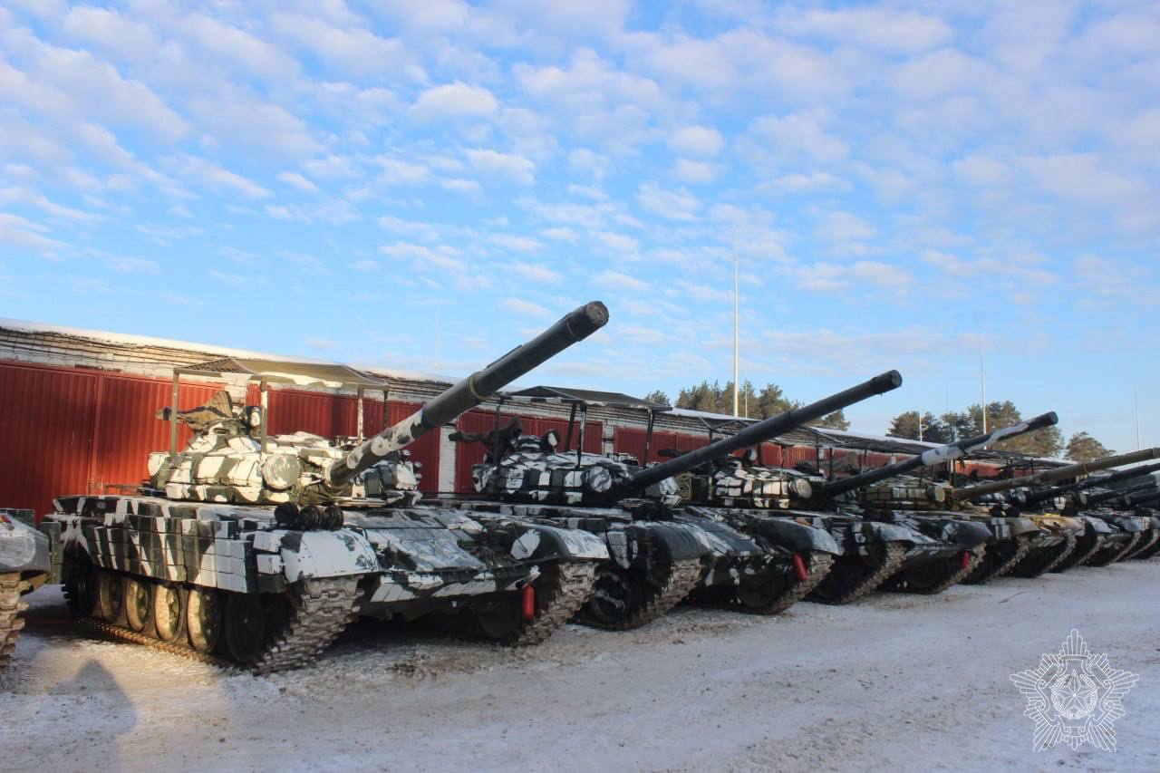 Hlavní bojové tanky T-72B běloruských pozemních sil, únor 2026.