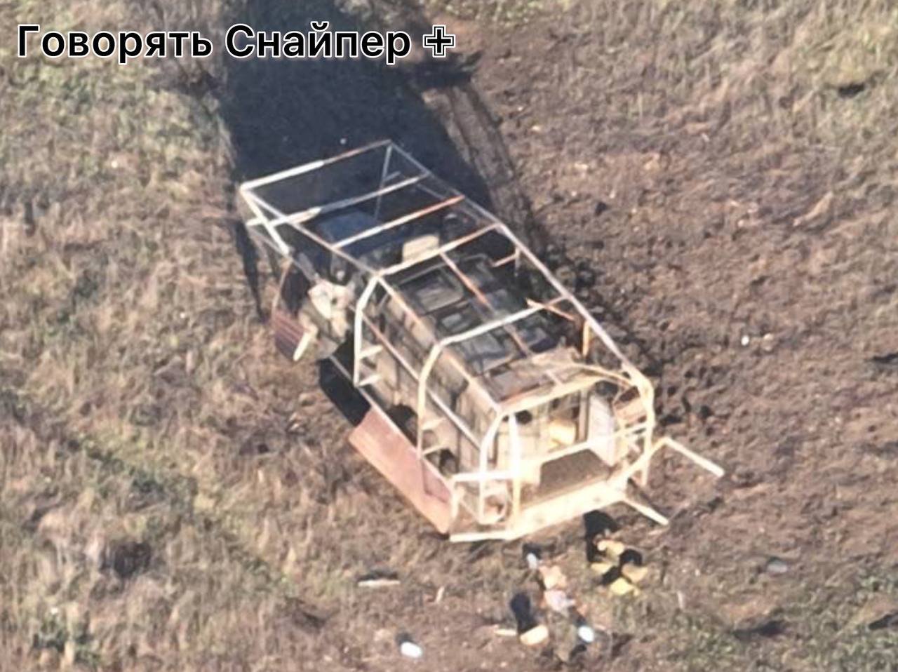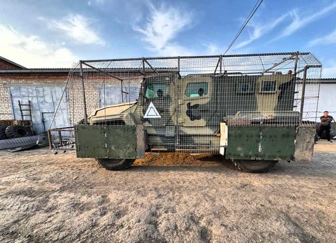 Improvizovaný transportér v podobě zaklíckovaného nákladního automobilu Ural. Zaznamenány již byly dva zničené tyto automobily kdesi u Robotyne.
