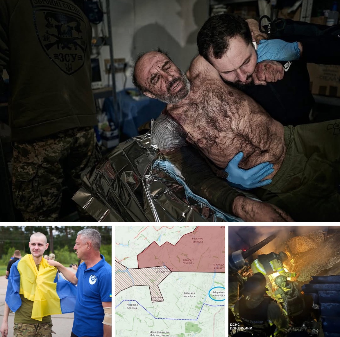 - V současné chvíli probíhá první fáze výměny zajatců, která byla dohodnuta na zatím posledním setkání delegací Ukrajina a Ruska v Turecku. Domů se vrátili mimo jiné i někteří vojáci, kteří bránili Mariupol v prvním roku invaze. Následovat bude v příštím týdnu repatriace těl padlých – těch, které Rusové předevčírem převezli k ukrajinským hranicím, aby s nimi nafotili a natočili propagandistické materiály pro dezinformace tvrdící, že Ukrajina si těla odmítá vyzvednout.