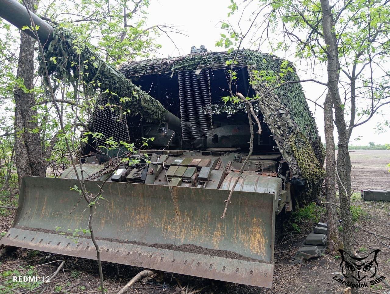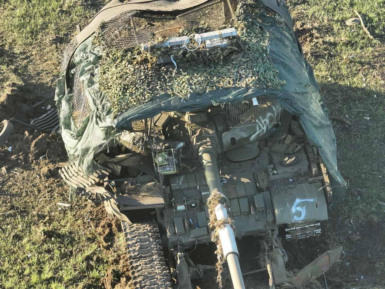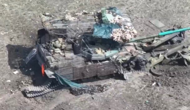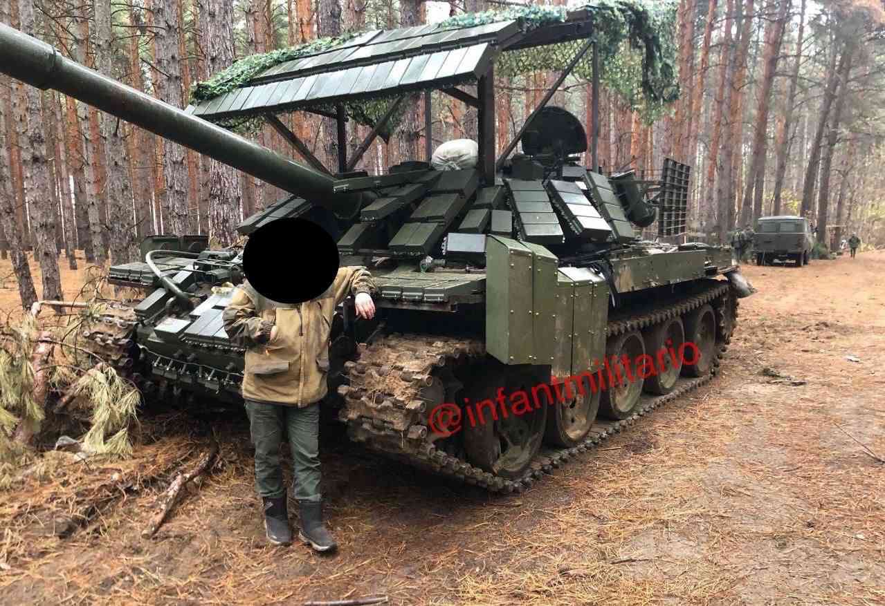 Zajímavá úprava tanku T-62, který byl nedávno nasazen a zničen. Ukrajinská 72. brigáda odrazila ruský útok na východní frontě dne 12. dubna 2024. Jak bylo řečeno, 2 MT-LB a 1 tank zničeny, 3 další tanky T-62 poškozeny.
