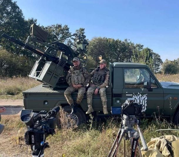 "Vojáci ukrajinské armády. První je vyzbrojen granátometem Repkon Defense RDS40-MGL a útočnou puškou AK-12 ukořistěnou nejspíše od ruských VDV. Druhý voják je vyzbrojen puškou AKM s předpažbím Kpyk, pistolovou rukojetí a ramenní opěrkou FAB a kolimátorem Mepro MOR."