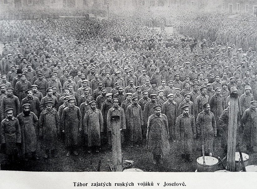 Ruští zajatci v Josefově a pohřeb jejich generála. Snímky z Vídeňských novin roku 1915.