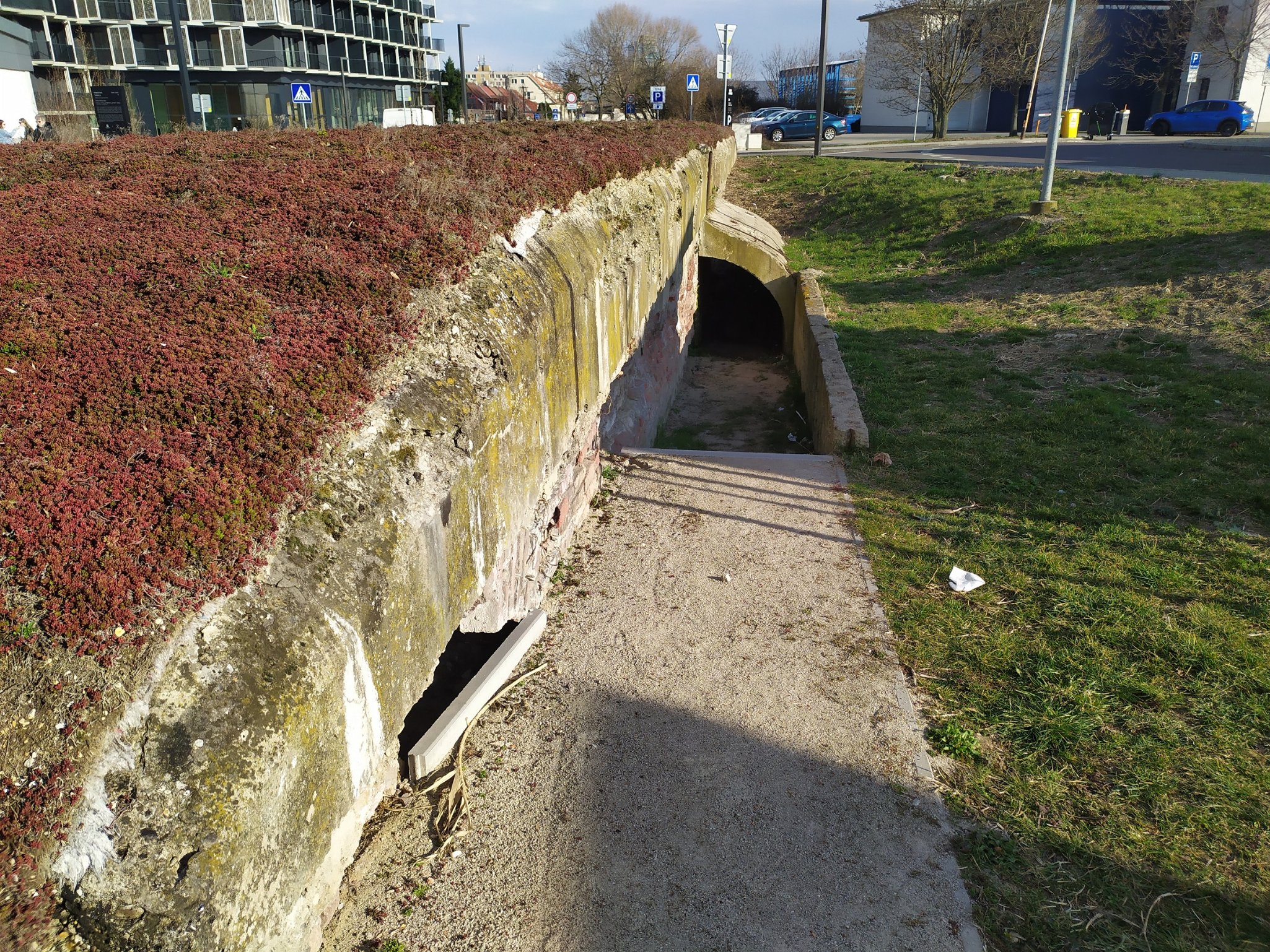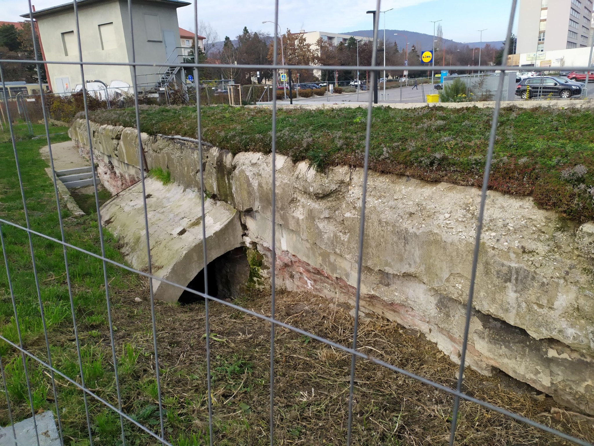 Tak kaverna je bez plotu! Uprostred sídliska sa tak nachádza vyše storočná stavba z I. svetovej vojny. Ako som predpokladal, solídna mreža vo vchode bráni prístupu nepovolaných "archeológov". Zároveň však bráni fotke vnútornýých priestorov.