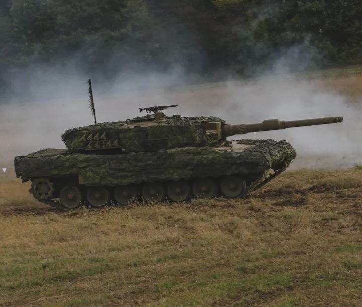 Slovenský Leopard 2A4 s multispektrální maskovací sítí. Fotografie od @zetko_photos