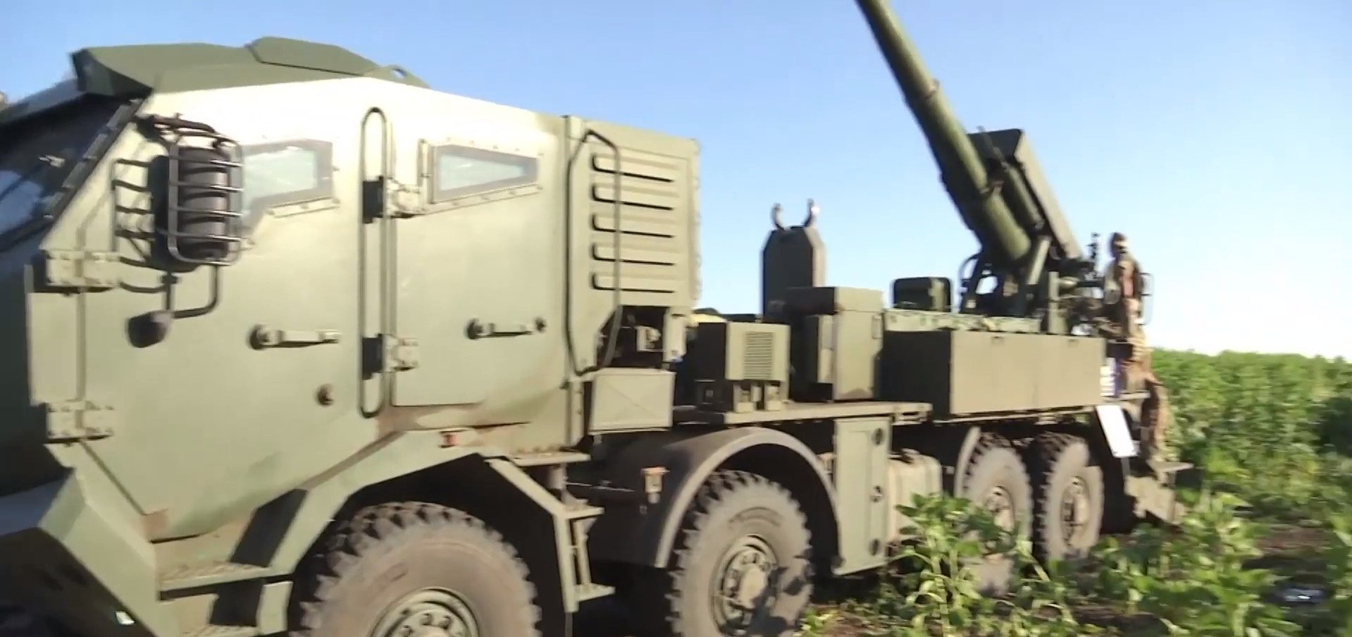Ukrajinská samohybná houfnice 2S22 Bohdana (3.0) na českém podvozku Tatra 815-7 Force 8x8 a pancéřovou kabinou Puma.